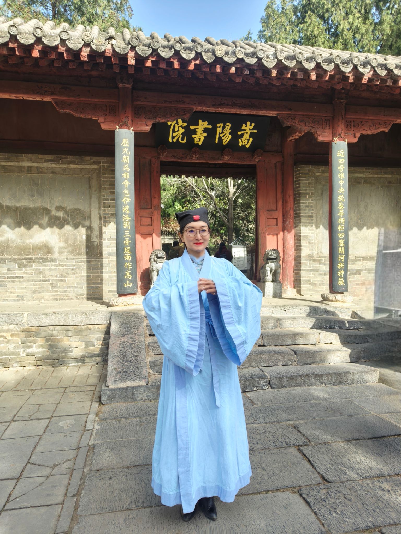 回望嵩阳书院的千年变迁,郑旺盛老师娓娓道来:始建于北魏484年的书院,初为嵩阳寺,隋唐五代易为嵩阳观,北宋定型为书院,数度更迭间,古碑迁移复归,未曾遭毁,尽显中华文化包容共生的特质。院内大将军、二将军两棵千年松柏,承载着汉武帝封禅的传说,历经沧桑仍苍劲茂盛,恰是中华文化根脉深厚、生生不息的象征;大唐碑虽由李林甫撰文留憾,却有徐浩八分隶书的潇洒厚重,站于碑前,大唐盛世的雄浑气象与文化底蕴扑面而来,撼人心魄。而武则天八次到访登封留下的文化印记、乾隆皇帝的足迹,更让书院的历史底蕴愈发厚重,每一处景致皆藏着文化的密码。