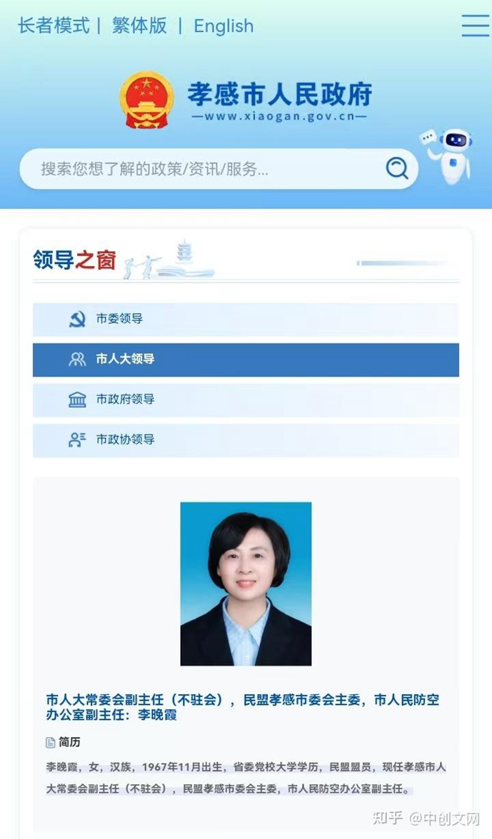 湖北省孝感市人民政府门户网“领导之窗”栏目显示,该市人大常委会副主任李晚霞同时兼任着市人民防空办公室副主任。更准确地说,李晚霞不仅是兼任此职务,其主要工作职责就在市人民防空办公室。或者说,她除了有限地参加该市人大及其常委会会议和活动外,该市人民防空办公室就是其主要工作岗位,甚至其人头编制和领取工资福利待遇都落在市人民防空办公室。